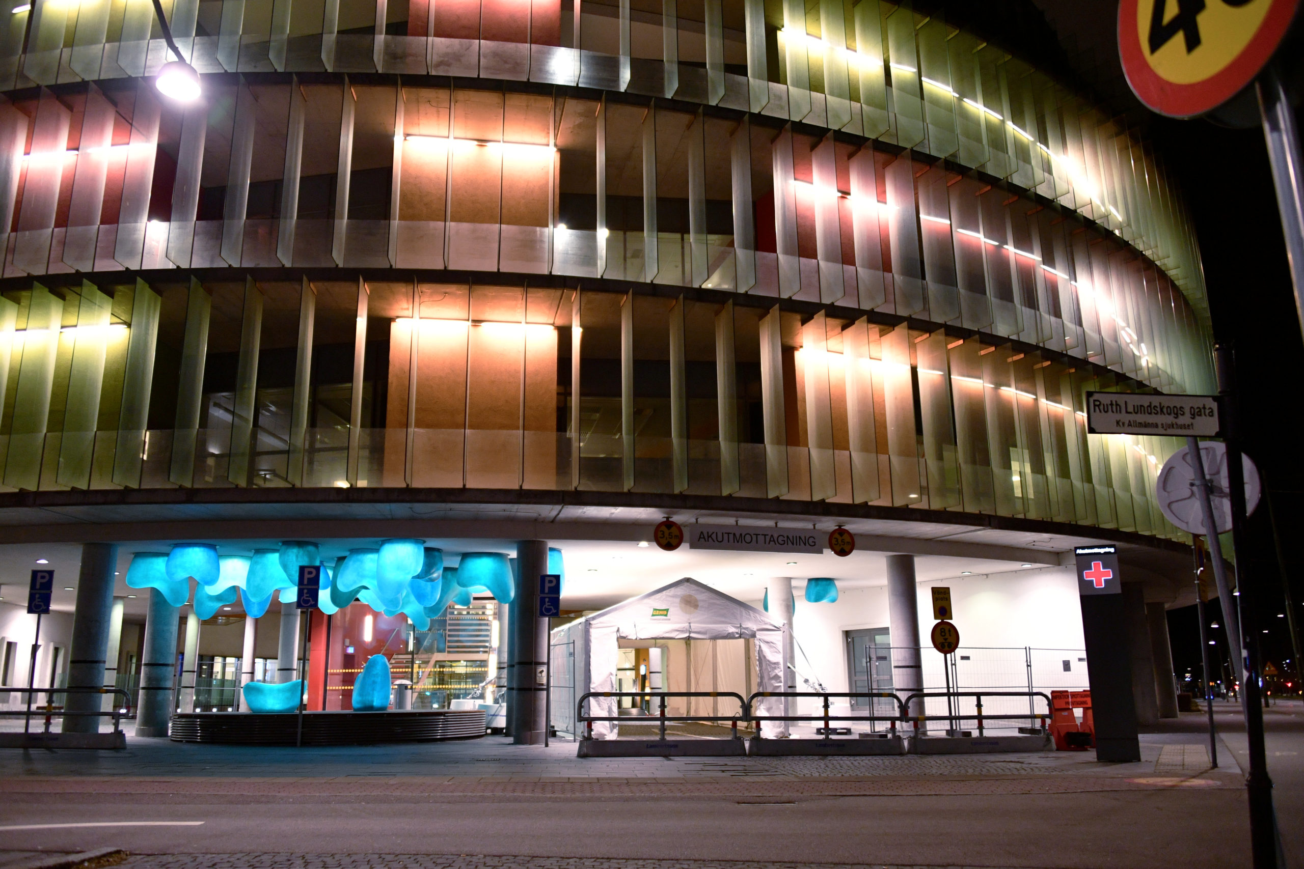 Infarten till akuten vid SUS i Malmö blockerades med betongfundament och gallergrindar under dagen. Även ett tält hade rests vid infarten till akuten för att…