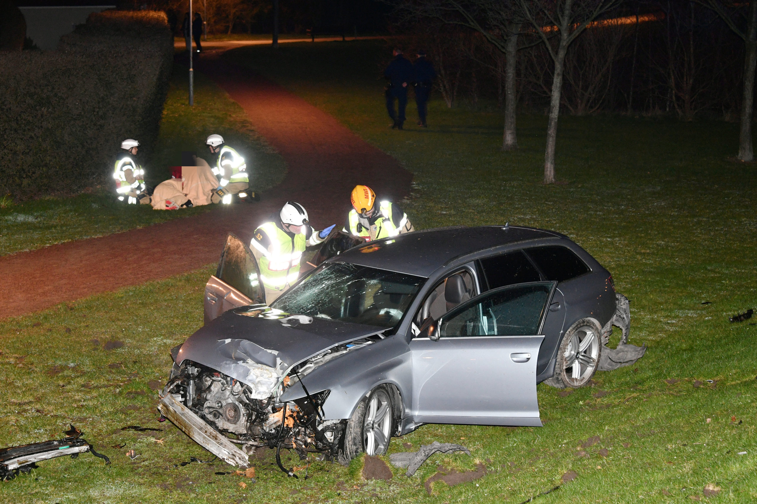 Brandkår och ambulans larmades vid 01.13 till en våldsam singelolycka på Lorensborgsgatan. En bilist hade i hög fart missat en rondell och kört över en…