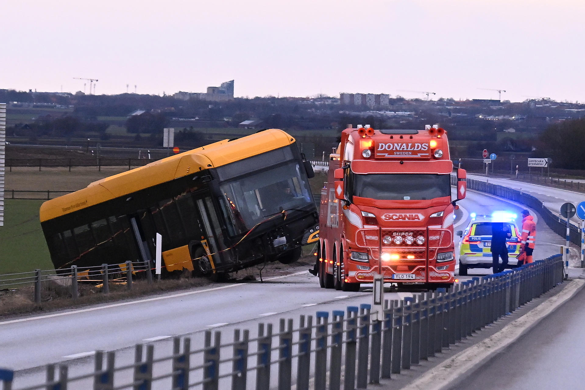 En regionbuss körde vid 16-tiden i diket på väg 108 utanför Dalby. Brandkår ambulanser och polis kallades till platsen. Minst en av passagerarna skadades och…