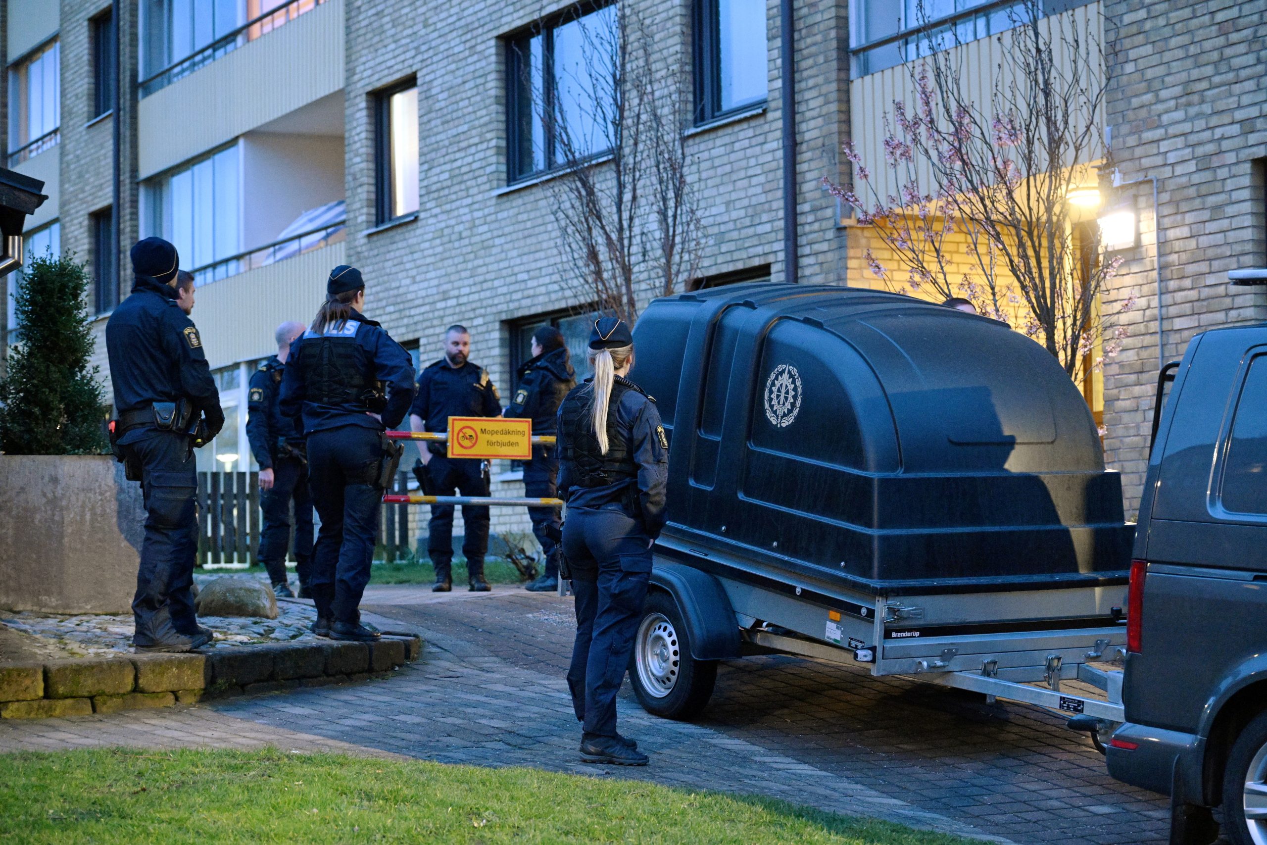 Stor polisinsats på Stensjögatan Bellevuegården i natt. Vid 05.40-tiden höll polisen på att lasta beslagtaget gods i en släpkärra. Polistekniker har varit på platsen under…
