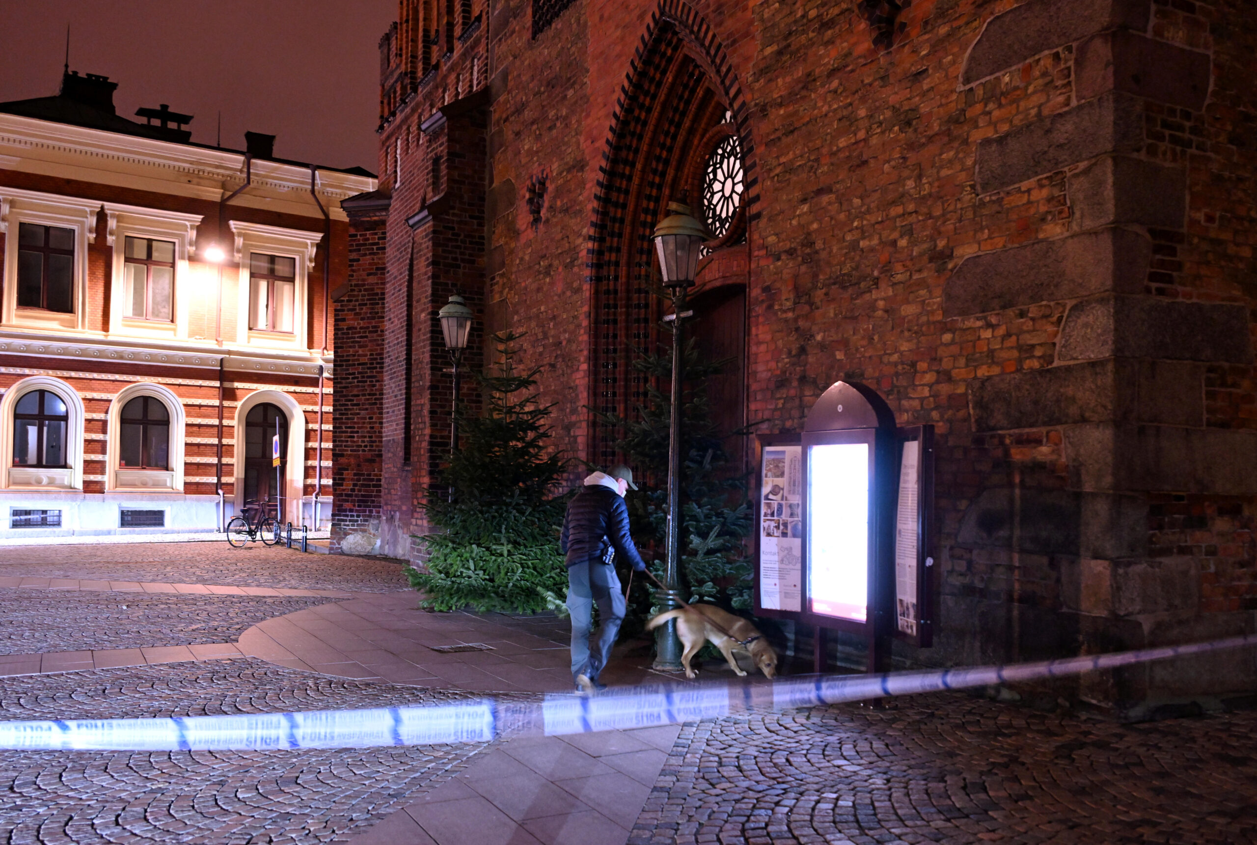 Misstänkt sexualbrott mot ung kvinna utanför Petrikyrkan entré i centrala Malmö. Polisen spärrade vid midnatt av ett område runt hela Petrikyrkan. Polisens specialsökhund arbete och…