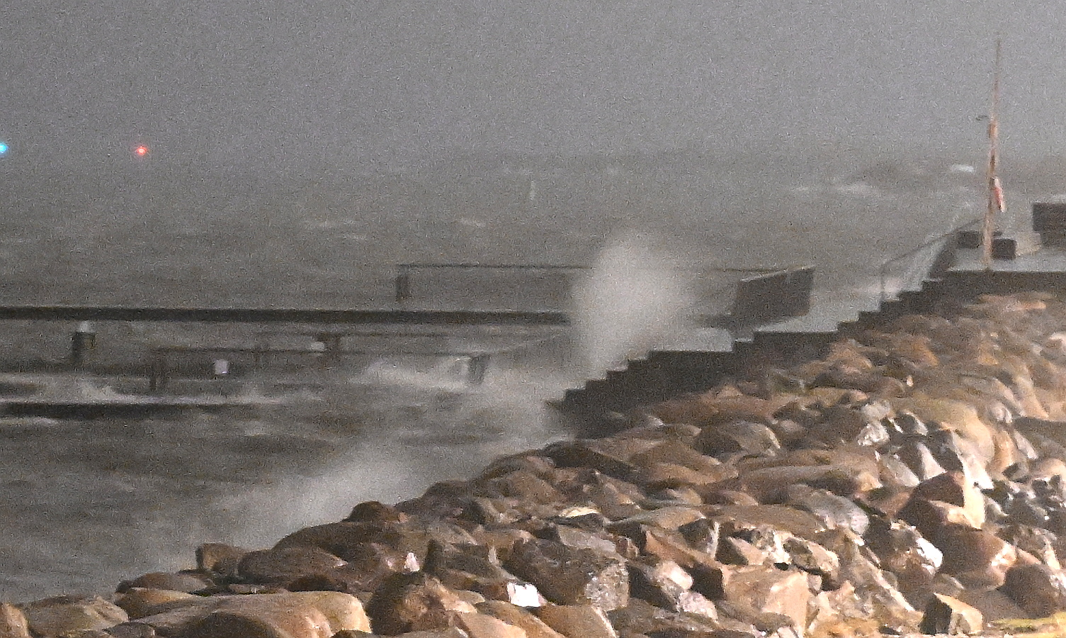 Högt vatten i Limhamns fiskehamn vid midnatt