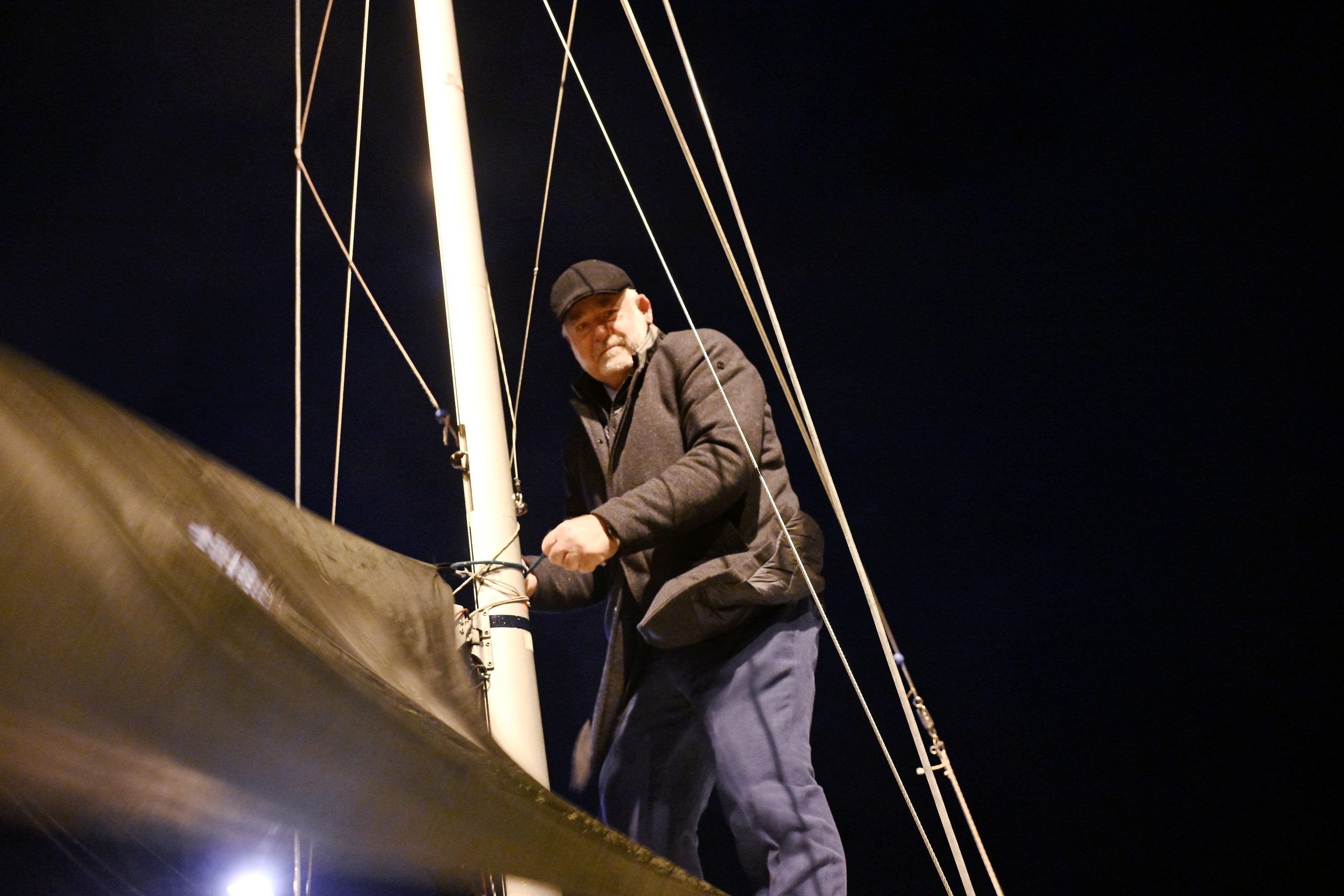 Leif Möller säkrade sina presenningar på segelbåten som låg upplagd i Limhamns småbåtshamn i Limhamn.