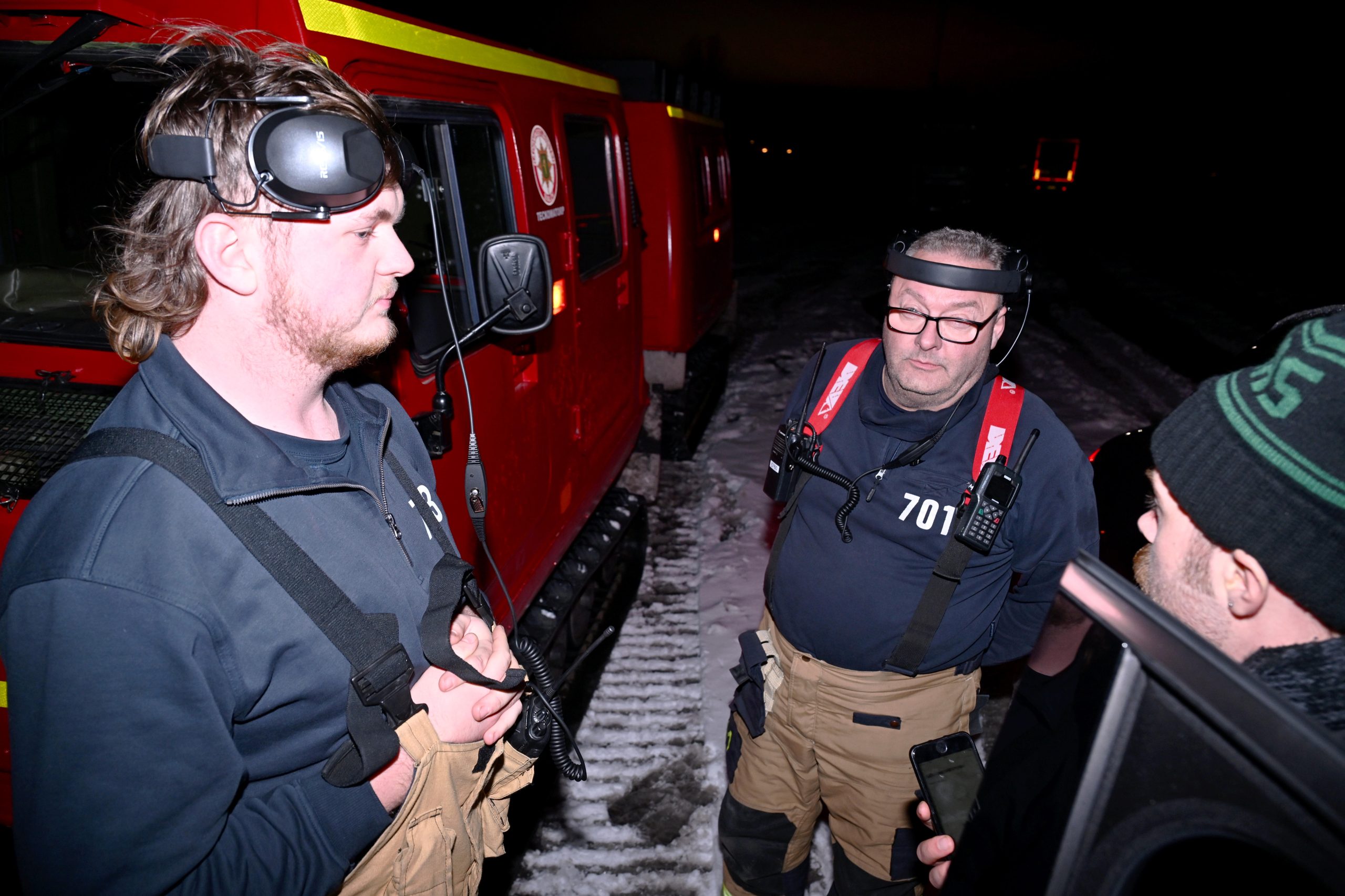 Bandvagns förare från Teckomatorps brandvärn vittnar om glashala vägar och lastbilar som blockerar vägen runt Teckomatorp. Först en bit efter midnatt hade bärgare fått loss…