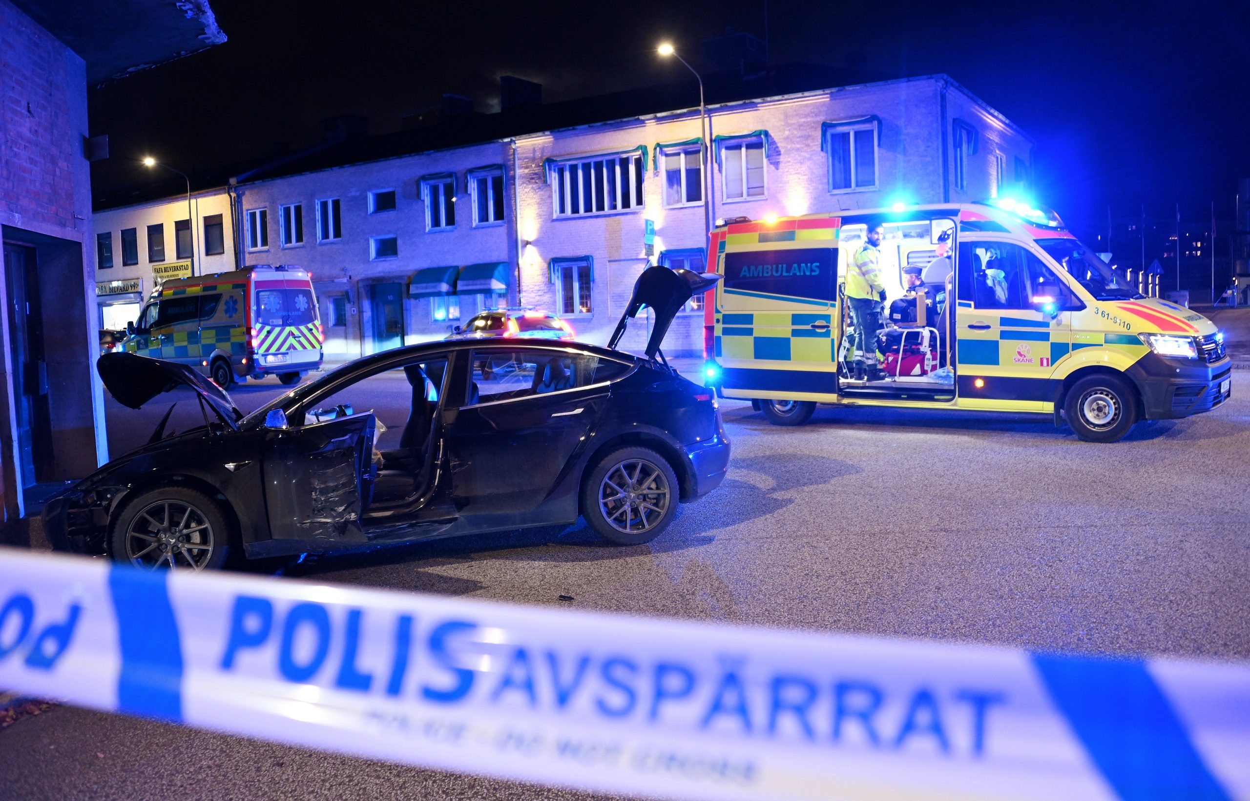 Trafikolycka mellan personbil och vägg på Norra Grängesbergsgatan vid 17.30-tiden. Enligt polisen skall bilföraren vara under 15-år. Tre personer fördes till sjukhus efter olyckan. Polisen spärrade av ca 200 meter av norra Grängesbergsgatan för att räddningstjänst och polis skulle kunna jobba ostört på platsen. Bilen som kraschade skall vara en hyrbil.