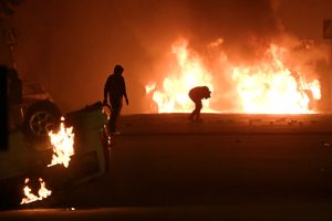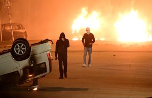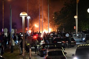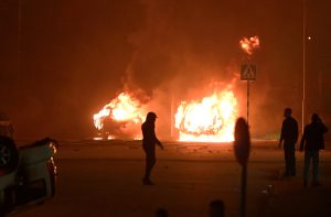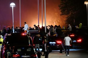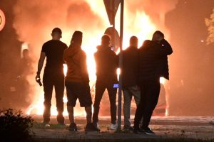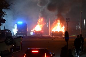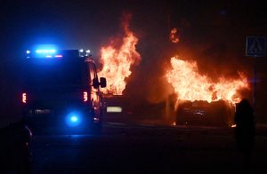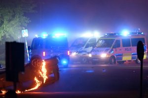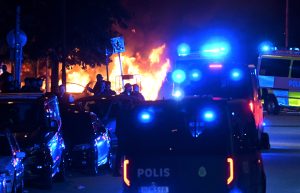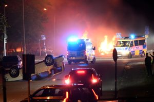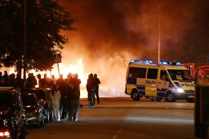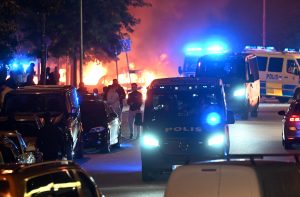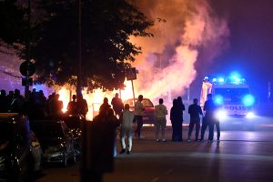 Brand i flera bilar på Ramels väg vid 23.20-tiden. Först brann 3 bilar längs Ramels väg i höjd med macken. Kort senare stacks ytterligare bilar i brand på en boendeparkering vid Ramels väg. Ett hundratal både yngre och äldre personer tog sig ner till platsen för att bland annat filma händelsen. När ett antal polisbussar kom fram utsattes de för stenkastning. Räddningstjänsten kom ej till platsen då det bedömdes som för farligt för brandpersonalen. Under en timmes tid körde ett tiotal polisbussar fram och tillbaka på Ramels väg med blåljus och sirener. När de närande sig de brinnande bilarna utsattes de för stenkastning av ett tiotal yngre maskerade män. En del av bussarna körde fram mot stenkastarna men poliserna i bussarna satt kvar medan ynglingarna turades om att kasta sten. Ynglingarna gick sedan och bröt mer sten från en närbelägen liten stenmur. Under närmare 2 timmar höll polisen på att köra med samma taktik utan att stenkastningen upphörde. Vid 01-tiden stacks fler bilar i brand i höjd med bensinmacken på Rammels väg. En bil vältes mitt på gatan och när den låg upp och ner stacks även den bilen i brand. När poliserna i bussarna närmade sig utsattes de åter för massiv stenkastning av nu ett femtontal yngre män. Flertalet polisresurser fans i närområdet men inga poliser hade lämnat sina bussar på Ramels väg vid 01.20-tiden. Enligt polisbefäl på platsen klassades händelserna som våldsamt upplopp. Vid 01.30-tiden hade varken polis eller brandpersonal kommit till skada vid händelserna som tros vara någon form av protest mot den tidigare kornabränningen på Värnhemstorget.
