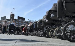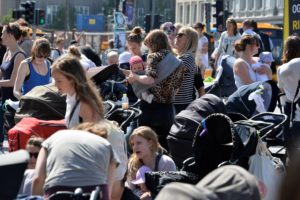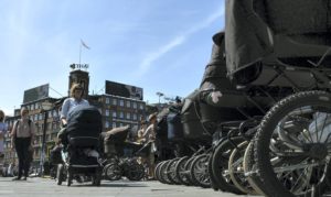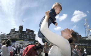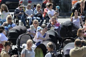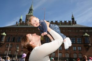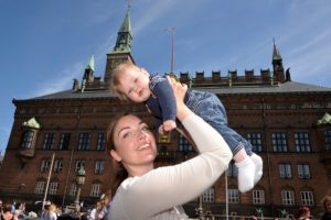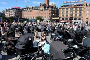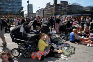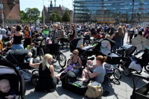 Ca 300 danska mödrar samlades vid 15-tiden på Rådhusplatsen i Köpenhamn för att protestera mot ett eventuellt amningsförbud. På bilden Camilla Hostrup-Larsen med sonen Nikolaj 5 månader.
