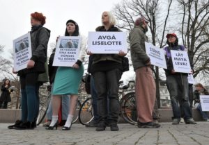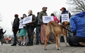 Ett femtiotal personer protesterade på Gustav Adolfs torg i Malmö mot att hunden Maya ska avlivas.