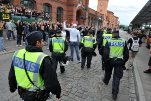 AIK-supportrar på och utanför O’Leary’s vid centralstationen i Malmö före matchen.