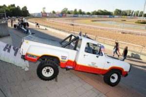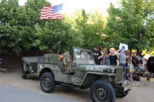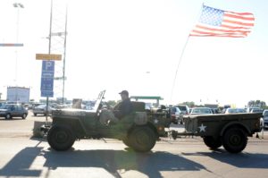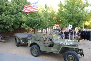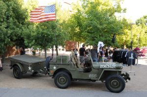 Amerikanskt nationaldagsfirande på Jägersro travbana i Malmö. Flera amerikanska bilar och jeepar ställdes ut i samband med firandet. På bilden en amerikansk jeep i originalskick med släp från 1943