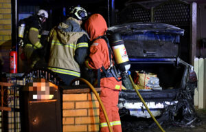 Anlagd bilbrand hotade sprida sig till villa på Jägersro villastad i natt.