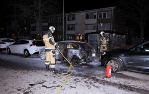 Brandkåren från Hylliestationen larmades vid 00.35 till en bilbrand på Hyacintgatan Holma. När brandstyrkan kom fram brann en parkerad bil kraftigt nära andra längs gatan parkerade bilar. Brandpersonal med pulversläckare och slangledning kunde släcka ner branden innan den spred sig vidare. Ytterligare en närstående bil fick mindre skador av värmen. Polis kom till platsen och upprättade en anmälan om skadegörelse genom brand.