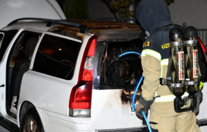 Brandkåren från Hylliestationen larmades vid 01.23 till en bilbrand vid en villa i Vintrie strax utanför Malmö. När brandstyrkan kom fram hade redan de boende i villan släckt ner branden. Rökdykare tog över eftersläckningsarbetet. Enligt räddningstjänsten fans det spridningsrisk till en annan bil och själva villan. Efter ca 10 minuter kunde brandstyrkan återgå. Polisen kom till platsen och upprättade en anmälan om skadegörelse genom brand.