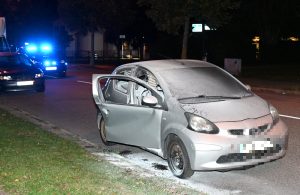 Brandkåren larmades vid 23.55-till en bilbrand på Derbyvägen. När brandstyrkan från Jägersrostationen kom fram kunde man snabbt släcka bilbranden med pulversläckare och slangledning. Polis kom till platsen och upprättade en anmälan om skadegörelse genom brand.