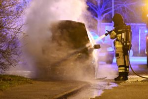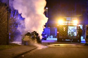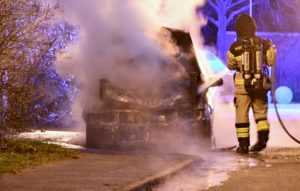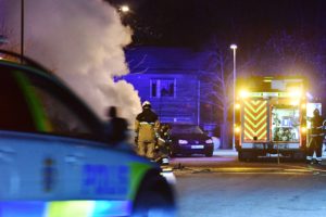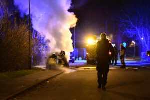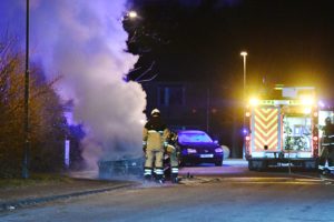 Anlagd bilbrand på Folksångsgatan vid 01.50-tiden. När brandstyrkan från Jägersrostationen kom fram var en bil parkerad längs gatan helt övertänd. Rökdykare med slangledning kunde snabbt så ner branden och påbörja eftersläckning. Inga andra bilar stod i omedelbar närhet av den branddrabbade bilen. Polisen kom till platsen och upprättade en anmälan om skadegörelse genom brand.
