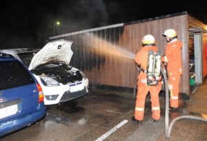 Brandkåren i Kävlinge och Löddeköpinge larmades vid 01.50-tiden till en bilbrand på Nordanväg i Kävlinge. När räddningsstyrkan från Kävlinge anlände hade branden spritt sig till ett flerbilsgarage. Brandpersonalen lyckades trots att man var en begränsad styrka att både släcka branden i garageväggen och själva bilbranden. Ett hål togs upp i garagets tak för att säkra att branden inte spritt sig i takkonstruktionen. Både polis och brandpersonal misstänkte att branden var anlagd.