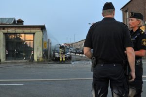 Anlagd brand i personbil på Norra Grängesbergsgatan vid 21.20-tiden. Brandpersonalen kunde snabbt släcka en brand i en personbil som stod intill en husvägg vid en bilfirma. På platsen befann sig ett större antal personer. Vissa lämnade uppgifter till polisen. Polisen upprättade en anmälan om anlagd brand.