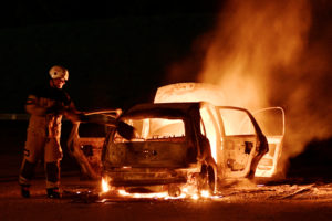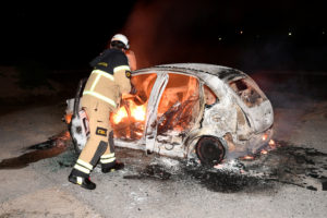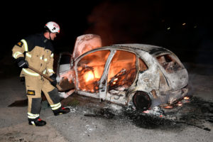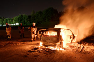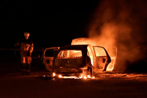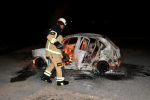 Brandkåren larmades vid 22.21 till en bilbrand på Segevångsbadets parkering. När brandstyrkan kom fram fann man en bil som nästan brunnit ut. Bredvid bilen fans en större grushög som användes för att släcka det sista av branden. Polisen kom till platsen och upprättade en anmälan om skadegörelse genom brand. Inga andra bilar stod på den öde parkeringsplatsen.