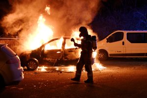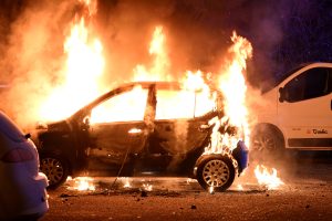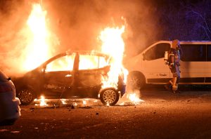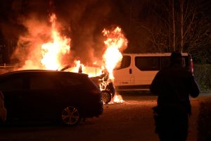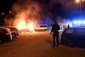Anlagd bilbrand vid Skarpskyttevägen i Lund