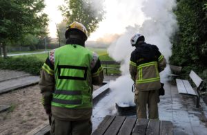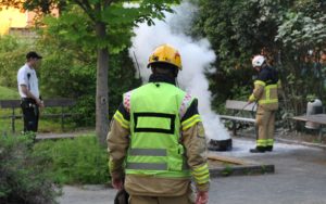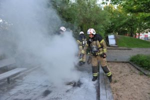 Anlagd brand i däck på lekplats bakom ICA Maxi på Ystadsvägen vid 21-tiden. En väktare hade först försökt släcka branden själ men var tvungen att kalla på brandkåren då däcket återantände trots han insats med pulversläckare.