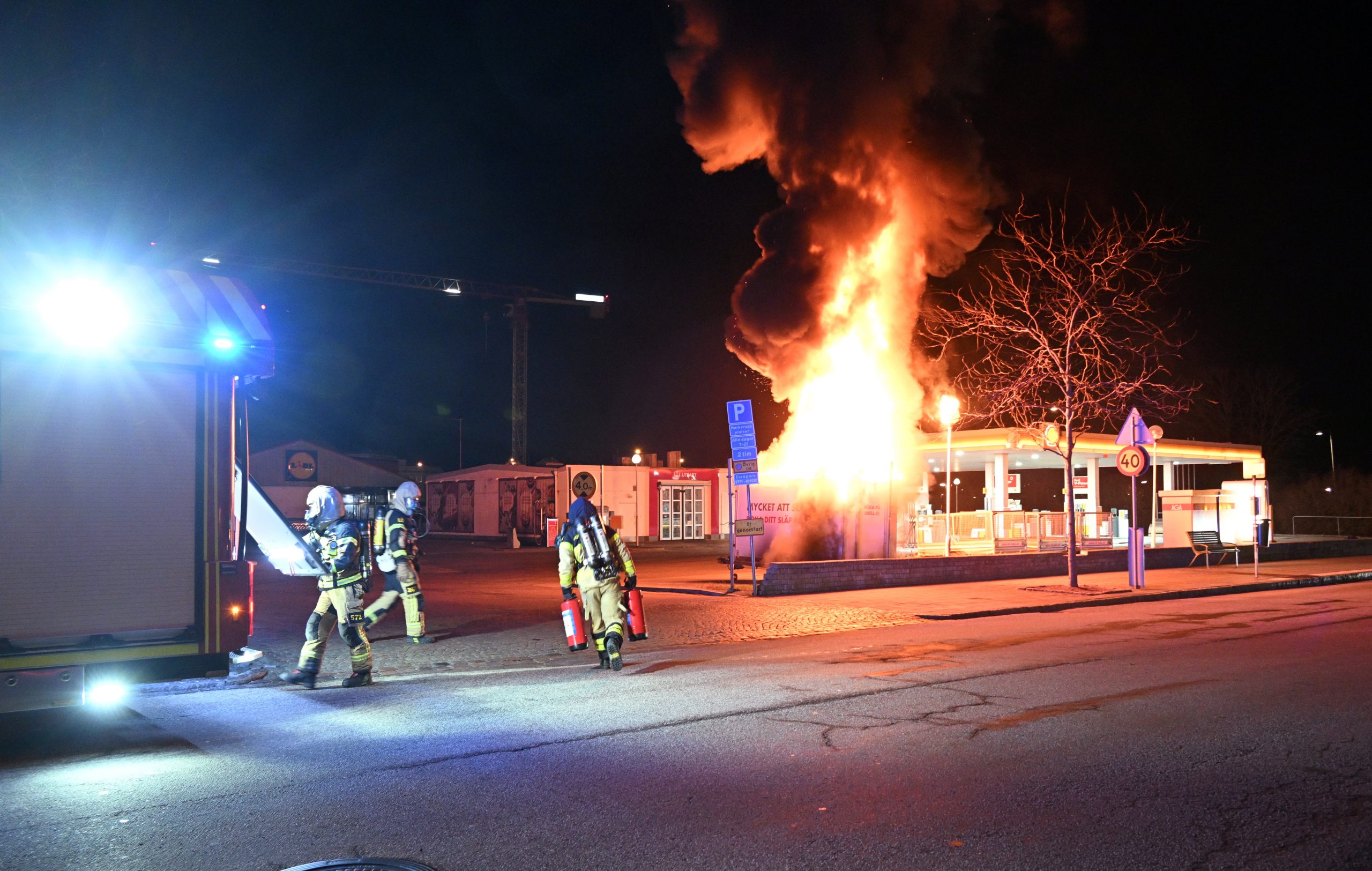Brandkåren larmades vid 01.40-tiden till en explosion och brand på Shell macken på Hyllie Kyrkoväg i Limhamn. Uppringare hade hört en explosion och sedan sett lågor från bensinstationen. När brandstyrkan från Hylliestationen kom fram brann det kraftigt i ett av de täckta hyrsläpen som stod ett tiotal meter från bensinpumparna. Rökdykare med både pulversläckare och slangledning kunde snabbt slå ner branden i släpet. Efter ytterligare ca 15 minuters eftersläckning var branden helt släckt. Polis kallades till platsen då det misstänktes att branden var anlagd.
