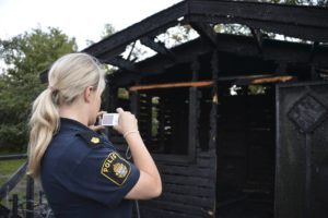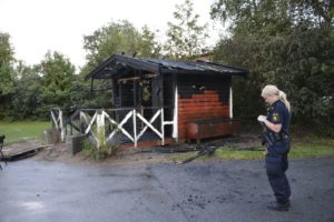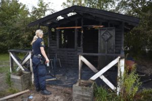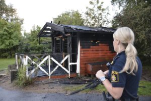 Anlagd brand i träbyggnad utanför skola på Poppelgatan vid 20-tiden. När brandpersonalen från Jägersrostationen kom fram var byggnaden övertänd. Polisen misstänker att branden är anlagd.