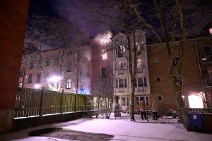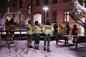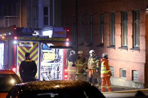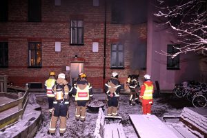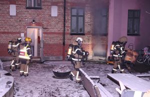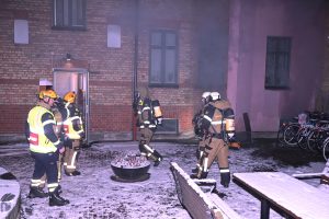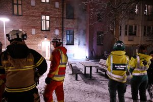 Brandkåren larmades vid 18.17 till ett rökfyllt trapphus på Solgatan Kirseberg. När brandstyrkorna kom fram kunde man snabbt konstatera att det brann i källaren. Ett 20-tal personer evakuerades från sina lägenheter då trapphuset blivit rökfyllt. Rökdykare kunde sedan ta sig in i källaren och släcka brand i ett källarkontor. Polis spärrade av Solgatan under räddningsinsatsen. En anmälan om mordbrand har upprättats av polisen.