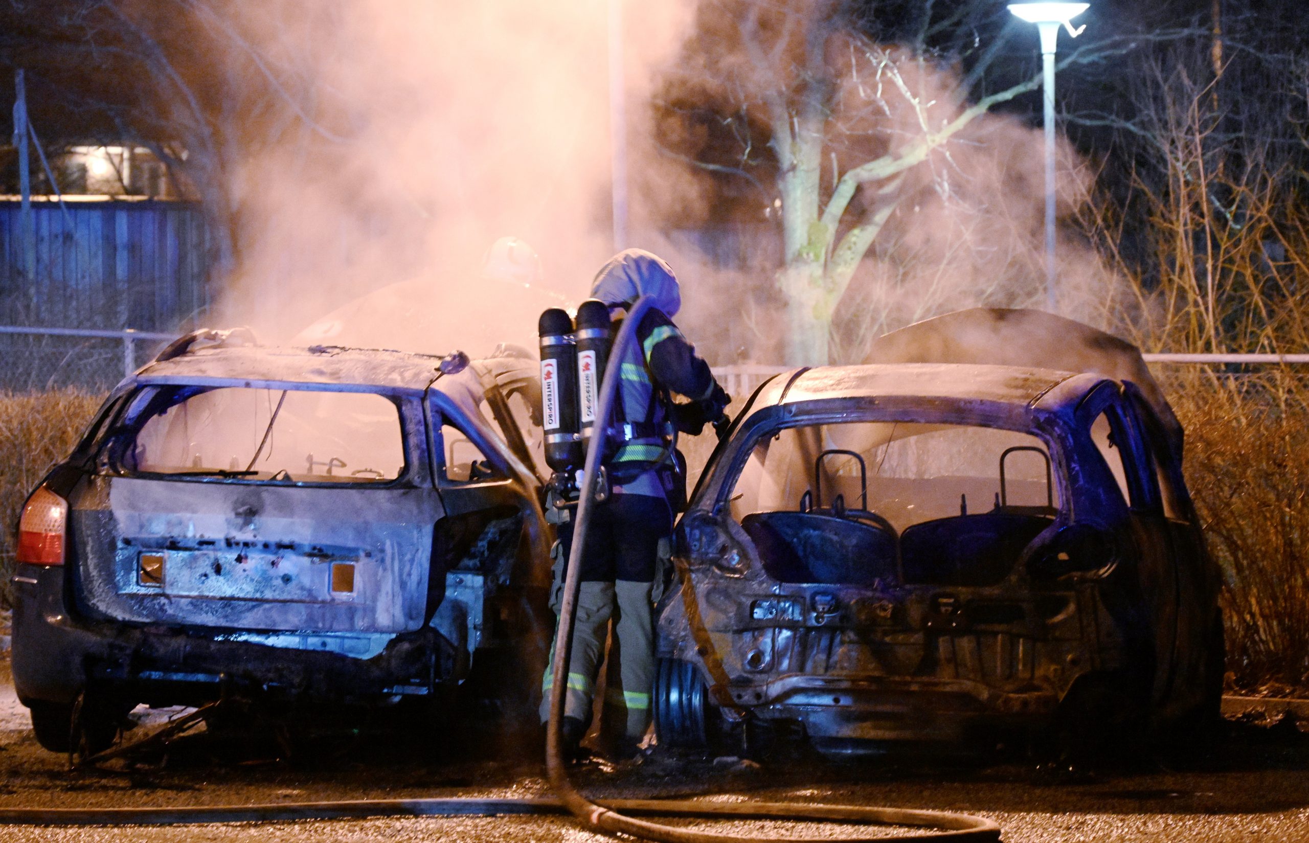 Anlagda bilbränder på Skarpskyttevägen i norra Lund