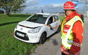 Singelolycka på Sturups flyplats parkeringsområde vid 17-tiden. I samband med olyckan välte personbilen med en kvinna och ett litet barn i. Hjälpsamma personer vände bilen på rätt köl igen innan räddningstjänsten och ambulanspersonalen hann fram. Enligt både ambulans och räddningspersonal är detta inte att rekommendera då personerna kan skadas värre om man välter tillbaka en bil som varit inblandad i en trafikolycka. Om det inte är omedelbar fara för brand ska man låta räddningstjänst ta ut skadade personer ur fordon. Vid olyckan fördes kvinnan och barnet till sjukhus med ambulans för kontroll.