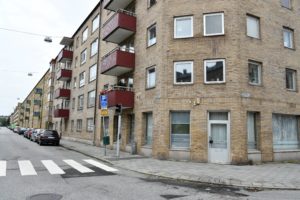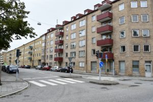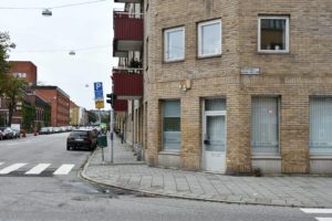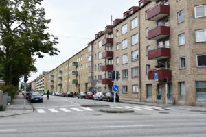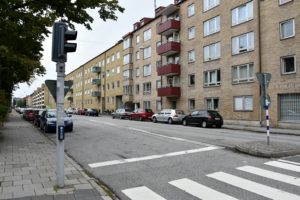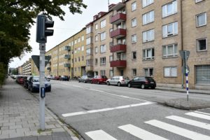 Bilar parkerade på Disponetgatan vid korsningen Föreningsgatan.