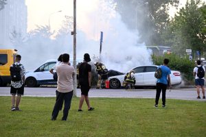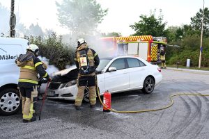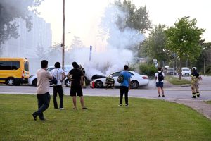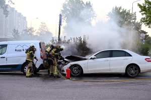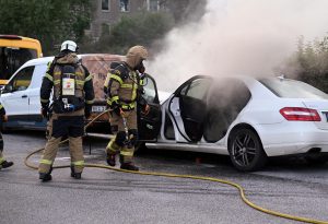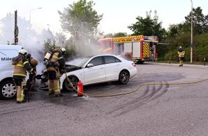 Brandkåren från Jägersrostationen larmades 20.53 till en bilbrand på Thomsons väg Rosengård. När brandstyrkan kom fram brann det kraftig i motorrummet på en personbil. Branden hade uppstått under färd men föraren hade tagit sig ur bilen oskadd. Rökdykare med pulversläckare och slangledning kunde stoppa branden innan bilen blev övertänd.