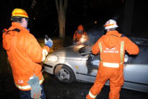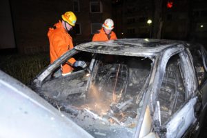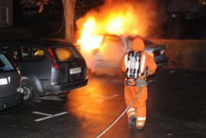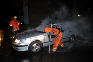 Flera uppringare till SOS hörde en smäll och såg sedan en personbil stå i lågor på Korsörvägen vid 00.50-tiden. När brandstyrkan från Centrumstationen anlände brann det ordentligt i den parkerade bilen. En del andra bilar stod en bit ifrån den brinnande bilen men skadades aldrig i samband med branden. Polisen misstänker inget brott i samband med branden. En trolig förklaring till branden torde vara elfel. Brandkåren förklarar att när en bil brinner så exploderar airbags och andra saker. Detta kan vara det uppringarna uppfattat som den kraftiga smällen.