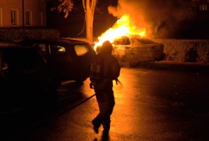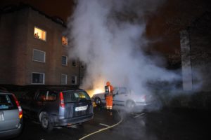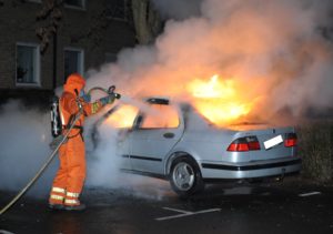 Bilbrand startade med smäll på Korsörvägen