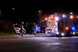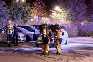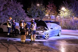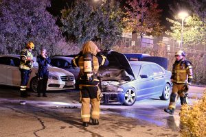 Brandkåren larmades vid 23.22 till en bilbrand på Tegelbruksvägen vid Oxie station. När brandstyrkan kom fram brann det i bilens motorutrymme. Brandpersonal kunde snabbt släcka branden som tros ha startat när bilen var under färd. Polis kom till platsen för att förhöra bilens förare.