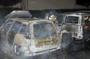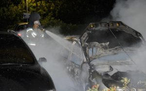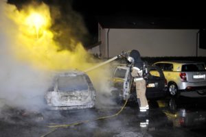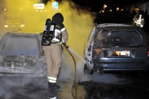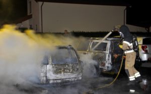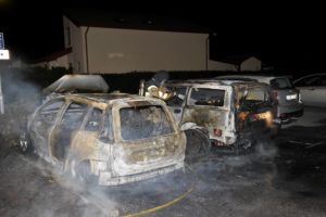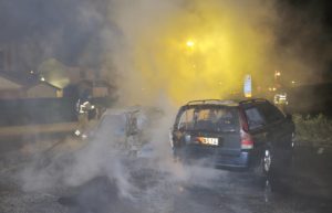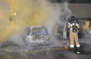 Brandkåren från Hylliestationen larmades vid 01.20-tiden till en bilbrand på Axel Danielssons väg. När brandstyrkan kom fram brann det i två personbilar som stod på en boendeparkering tillhörande ett radhusområde. Flera av de boende vittnar om att det först hörts kraftiga smällar och sedan brann det i en bil. Troligen har branden spritt sig till den närstående bilen som även den blev totalförstörd. Polisen upprättade en anmälan om skadegörelse genom brand.