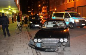 Polis och ambulans larmades vid 00.50-tiden till en trafikolycka i korsningen Västra Kanalgatan och Storgatan. På plats kunde man konstatera att en bilist först krockat en stillastående bil och därefter delvis kört på en cyklist. Cyklisten klarade sig utan allvarligare skador meden bilisten undersöktes av ambulanspersonal då man misstänkte att han drabbats av sjukdom strax innan olyckorna.