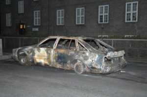 Bilvrak kvar efter helgens oroligheter på Nörrebro Bilvrak kvar efter helgens oroligheter på Nörrebro