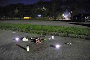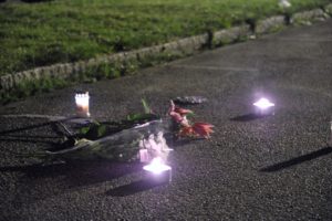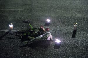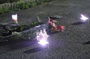 Blommor och ljus på platsen för mordet Sibbarp Blommor och ljus på platsen för mordet vid Sibbarps kallbadhus.