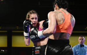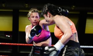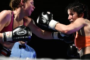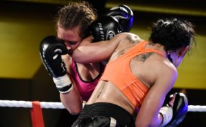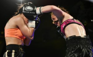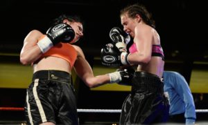 Boxningsgalan på Amiralen i Malmö. På bilden förlorade Anna Hultin knappt mot den polske boxaren Karina Kopinska. Domarna blandade ihop vem som vann och hyllade först Anna Hultin.