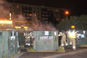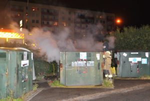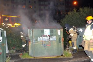 Brand i återvinningskärl på Hermodsdalstorget vid 20.40-tiden.