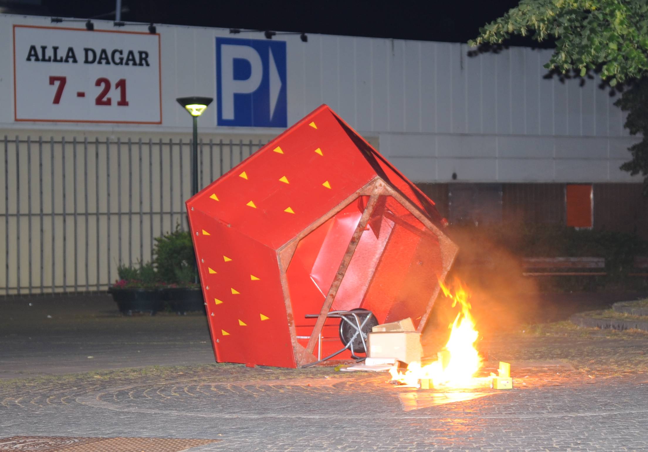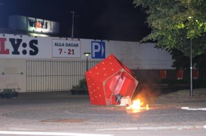 Brand i jordgubbsstånd utanför Willys på Linnegatan i Limhamn vid 00.55-tiden i natt. Någon hade vält jordgubbståndet och sedan antänd delar av ståndet. Brandkåren fick dock branden snabbt under kontroll.