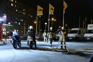 Brandkåren larmades vid 01.30-tiden till bensinmacken på Ramels väg Rosengård. En polispatrull hade sett att det brann i en av lastbilarna som stod parkerad för uthyrning på macken. När brandstyrkan kom fram var bilen övertänd och branden hotade att sprida sig vidare till de andra lastbilarna som stod intill. Men brandpersonalen han släcka branden innan den spred sig. I nuläget är det oklart hur branden startat men sista tiden har det varit oroligt i området runt Ramels väg.
