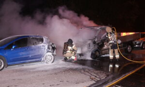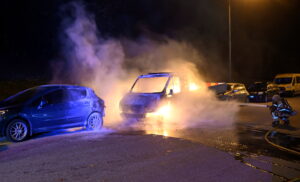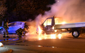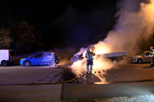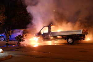Brandkåren i Burlöv larmades 02.02 till brand i bilar och en mindre lastbil på Rapsvägen i Arlöv. När brandstyrkan kom fram var lastbilen helt övertänd och branden hade spritt sig till framförvarande bil. Rökdykare med både pulversläckare och slangledning kunde slå ner och stoppa branden innan den spred sig till ytterligare bilar. Vad som orsakat branden är i nuläget oklart.