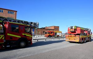 Brandkåren larmades vid 18.14 till en brand i en övergiven lagerlokal på Hans Michelsensgatan. När brandstyrkorna kom fram säg man rök komma från lagerlokalen. Rökdykare med slangledning sattes in för invändig brandsläckning. Efter en kort stund hade rökdykarna hittat branden och påbörjat släckning. Branden kunde släckas på några minuter och efter ytterligare en stund eftersläckning och rökutvädring kunde brandpersonalen avsluta sitt arbete på platsen. Sannolikt är branden anlagd. Polis kom till platsen och upprättade en anmälan.