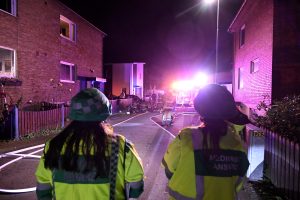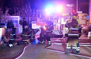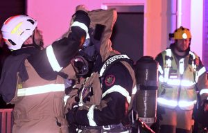 Brandkåren i Landskrona larmades vid 02.23 till en brand i ett parhus på Algatan i Landskrona. När brandstyrkan från Landskrona kom fram såg man rök komma från fönstren i parhuset. En kvinna som befunnit sig i huset togs omhand av ambulanspersonal. Kvinnan fördes sedan till sjukhus för kontroll. Rökdykare tog sig in i huset och kunde snabbt släcka branden i vardagsrummet. Efter detta vädrades rök ut och en del saker lämpades ut för att säkerställa att branden var helt släckt. Hur branden startat kommer nu polisen att utreda.