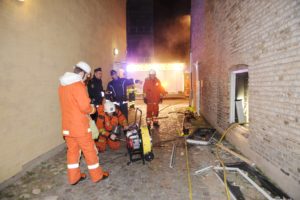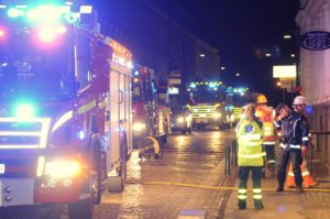 Brandkåren i Lund och Kävlinge larmades vid 02.25 till en brand på Östra Mårtensgatan i centrala Lund. Boende i hyresfastigheten kände stark röklukt och flydde från sina lägenheter. När brandstyrkan anlände kunde man konstatera brand i en skivbutik som ligger i byggandes källarplan. Rökdykare sattes in för släckning och efter ca 20 minuter var branden helt släckt. Troligen har branden startat i ett mindre pentry och därefter spritt sig till inredningen i butikens fikarom. Vädringen av lokalen tog ytterligare en timmes tid och brandpersonalen fick använda sig av två övertrycksfläktar för att bli av med all brandrök. En kvinna som bodde ovanför butiken fick syrgas i läkarbilen och kunde därefter gå tillbaka till sin lägenhet.