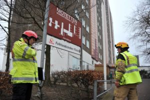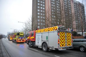 Brand i soprum på Motetten vid 18.40-tiden. Brandrök från det brinnande soprummet spred sig 17 våningar upp i höghuset och rökdykare sattes i för ventilation och eventuell livräddning. Personer som befann sig i en lägenhet på våning 16 besvärades av brandröken men behövde inte uppsöka sjukvård. Sopbranden kunde snabbt släckas av rökdykare men källaren och trapphuset tog längre tid at ventilera på brandrök. Inga personer skadades vid branden.