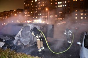 Brandkåren flydde efter stenkastning vid brand vid ett hyreshus på Rosengård. Brandkåren larmades vid 21.50-tiden till en misstänkt brand i en tvättstuga på Ramels väg. När brandstyrkan kom fram till adressen möttes man av stenkastning och tvingades retirera. Flertalet polispatruller kommenderades till Rosengård för att assistera brandpersonalen. Efter en stund hittade en polispatrull en brinnande skåpbil på Ramels väg i höjd med Minilivs. Polisen säkrade platsen med flera polispatruller så brandpersonalen skulle kunna släcka utan att bli utsatt för ytterligare stenkastning. Bilbranden kunde sedan snabbt släckas av brandkårens rökdykare. Den misstänkta branden i tvättstugan som brandkåren först larmats till visade sig vara av mindre art. Troligen handlar dagens våldsamheter på Ramels väg om polisen insats mot kriminalitet. Under senaste tiden har polisen ingripit flertalet gånger mot kriminella i området runt Ramels väg.
