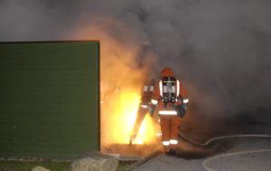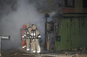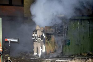 Brandkåren larmades vid 01.30 till ett brinnande radhusförråd på Stensåkersvägen i Oxie. När räddningsstyrkan anlände brann det ordentligt i förrådet som var av trä. Branden hotade att sprida sig till radhuset men rökdykarna lyckades att slå ner branden innan den fick fäste i själva huset. Grannar hade sett ynglingar springa från platsen i samband med att branden startade. Av den anledningen misstänker polisen att branden är anlagd och området runt förrådet spärrades av i väntan på polisteknisk undersökning. Andra grannar hade innan brandkåren anlände försökt att släcka branden med brandsläckare men dessa försök misslyckades på grund av att branden var för kraftig för de små brandsläckarna. Kvinnan som bodde i radhuset med barn chockads i samband med branden och fördes ut till en polisbil.