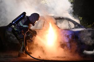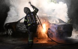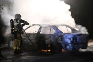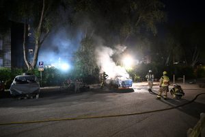 Brandkåren larmades vid 23.50-tiden till en bilbrand vid ett boende på Cronquists gata i Malmö. När brandstyrkan kom fram var en bil helt övertänd. Rökdykare med slangledning kunde snabbt slå ner brand. Efter ytterligare 10 minuters eftersläckning var bilen helt släckt. Polisen knackade dörr på boendet i jakt efter bilägare och eventuella vittnen. En anmälan om skadegörelse genom brand upprättades.